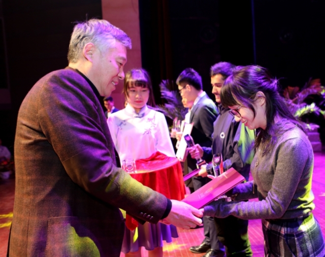 Liu Hongjian, vice chancellor of the university, and Wang Zhilin, vice president, presented to Wang Danliang and nine other students the honorary certificates of the “Nominee for the Student of 2016 at Nanjing University.”