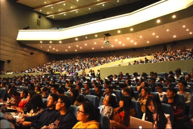 Professor Robert Huber, the Nobel laureate for Chemistry in 1988, delivered a speech on his experience of “New Visual Methods” in research on protein and medicine development to over 1,000 Nanjing University students in the evening of October 25.