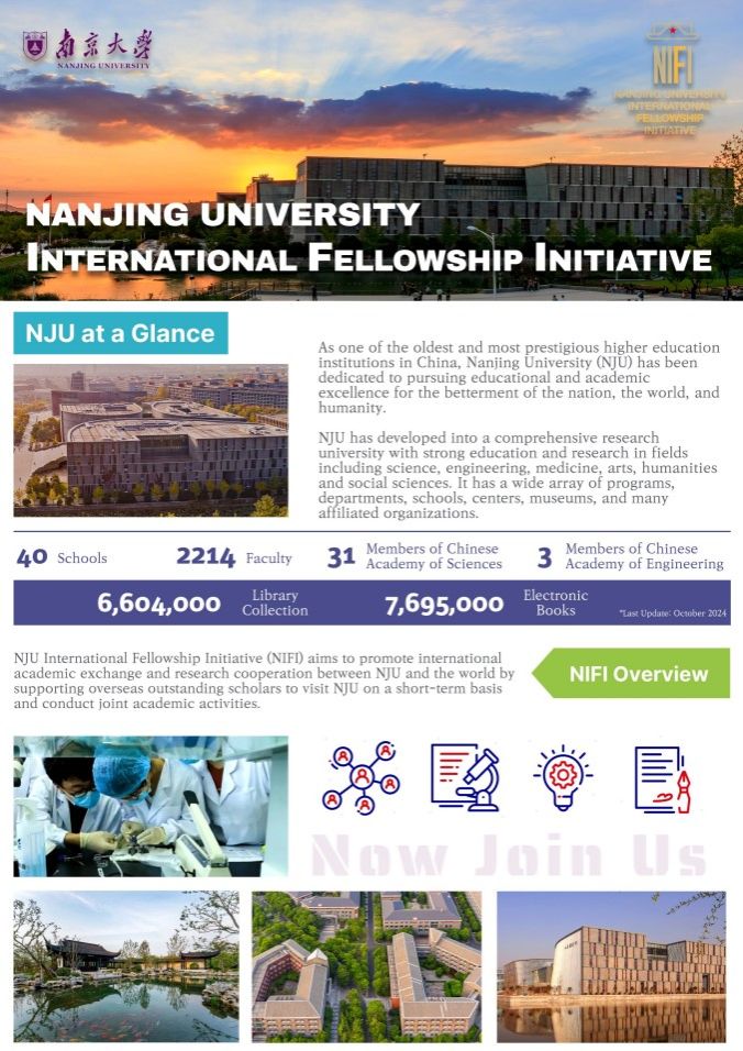Nanjing University is pleased to invite applications for its 2025 International Fellowship Initiative Program, which is designed to promote international academic exchange and research cooperation between Nanjing University and the rest of the world by supporting overseas outstanding scholars to visit Nanjing University on a short-term basis and conduct joint academic activities.?