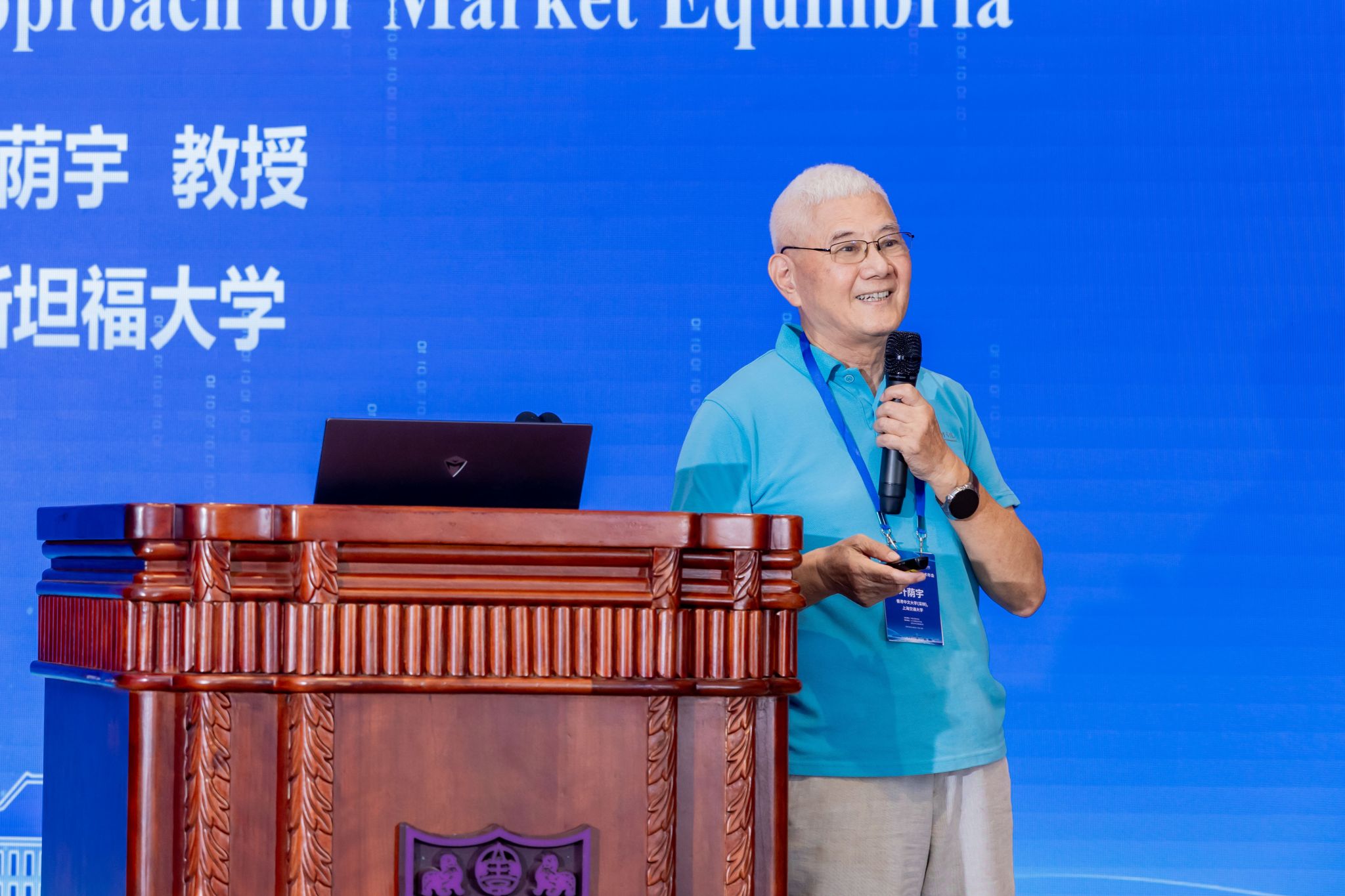 开幕式结束后,三位大会报告人分别作大会邀请报告。上海市静安区副区长胡勇在题为“充分释放数据要素价值,赋能经济社会高质量发展”的大会报告中介绍了海量数据在上海静安区政务、商业、医疗、产业园区、人工智能等多个领域的场景化应用,通过发挥数据要素乘数效应,推动了静安区经济社会高质量发展。斯坦福大学李国鼎讲席教授叶荫宇教授在题为“The Implicit Barrier of Utility Maximization: An Interior-Point Approach for Market Equilibria”的大会报告中介绍了通过发掘市场均衡问题内潜在的障碍结构,结合高阶信息所设计的具有线性收敛速度的内点算法,该算法在部分问题内可达到超线性收敛速度,优于传统方法的次线性收敛。香港中文大学(深圳)校长讲座教授、协理副校长黄建伟教授在题为“Data Trading: From Multi-source to Streaming”的大会报告中介绍了适用多源数据问题的卖家协同、动态定价的博弈模型,揭示了策略性数据耦合对收益规模与稳定性的影响,填补了智慧城市、医疗和去中心化人工智能领域在可扩展、公平数据经济方面的关键空白。