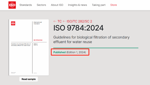 近日,由凯发k8官网任洪强院士团队主导研制的国际标准ISO 9784 Guidelines for biological filtration of secondary effluent for water reuse(《用于水回用的二级出水生物滤池处理技术指南》)获ISO中央秘书处批准正式发布。