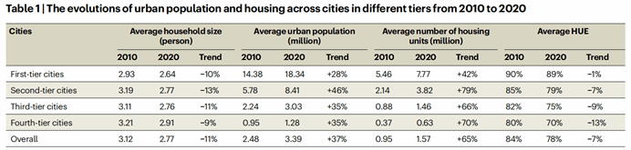 表1|2010年至2020年不同层级城市的城市人口与住房演变