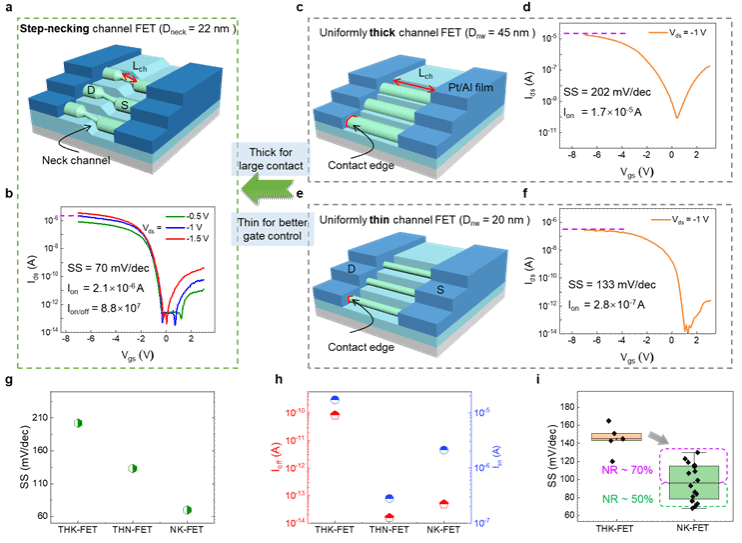 受益于此,Step-Necking 纳米线TFT器件展示了优异的栅控效果和大幅改善的输运特性,实现了