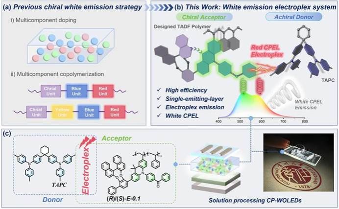 图4新型CP-TADF高分子设计策略和CP-WOLED器件。