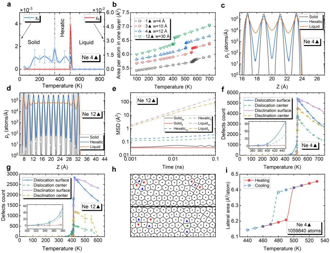 图2:受限单层氖的熔化行为,与描述二维固体的熔化的KTHNY理论预测一致